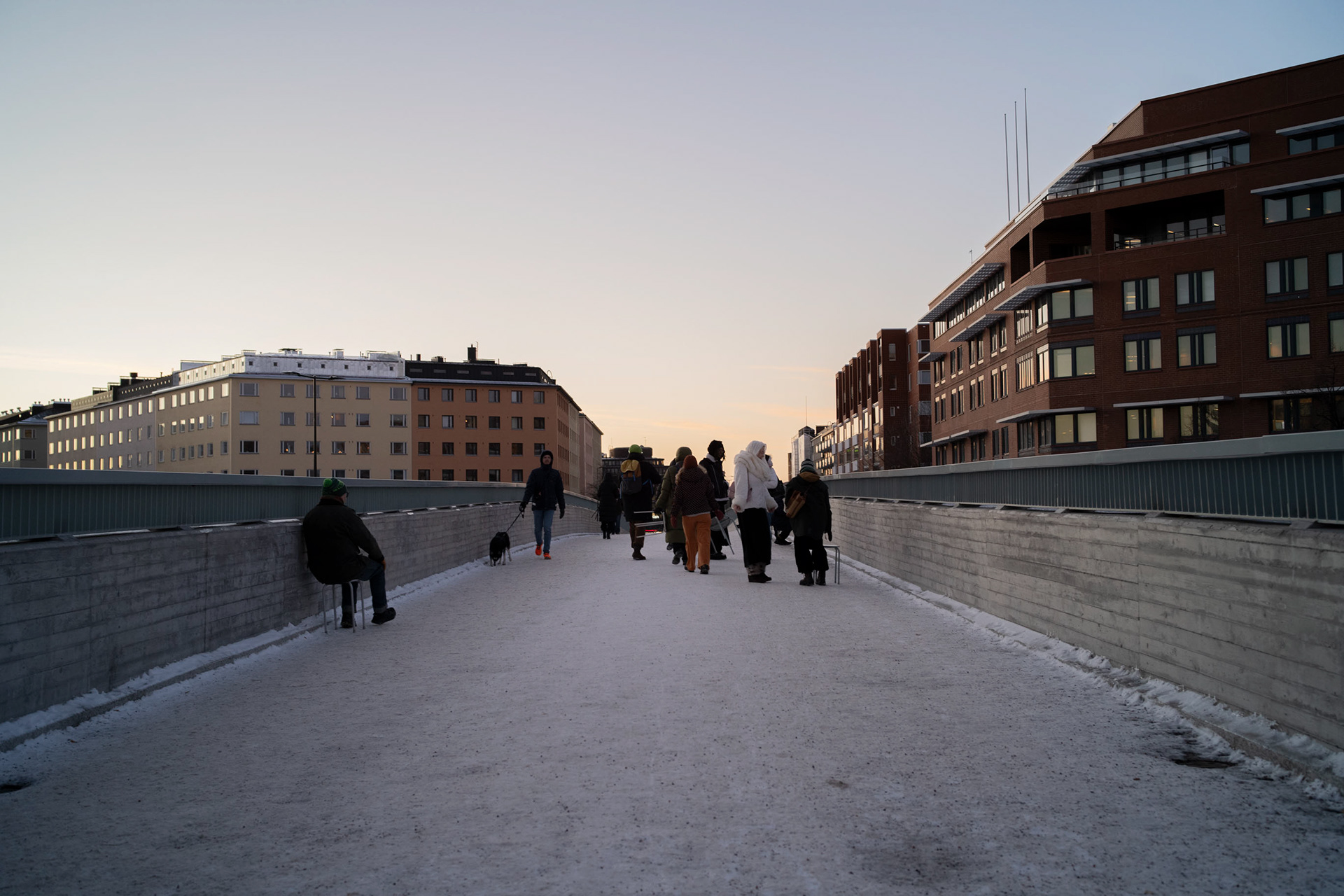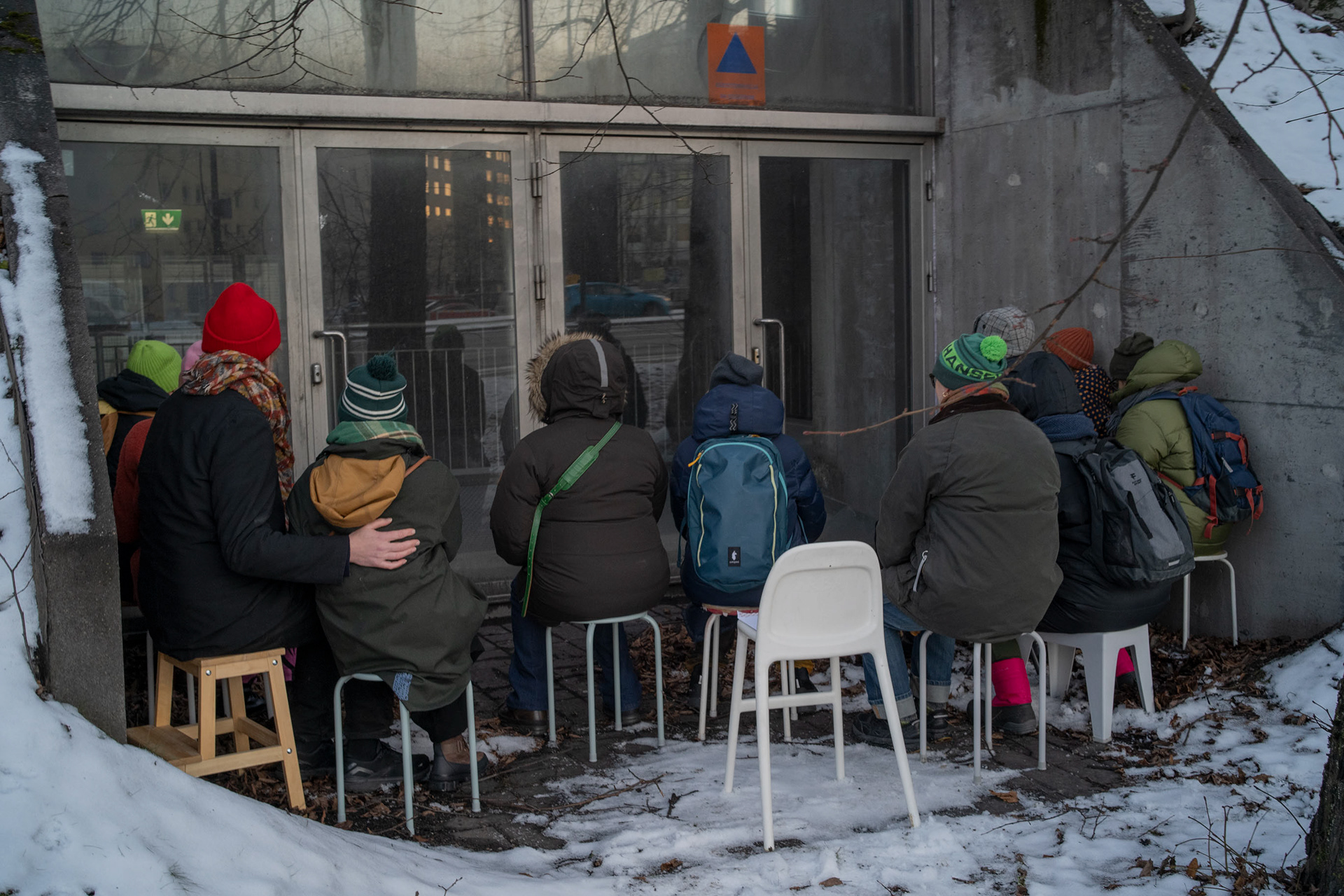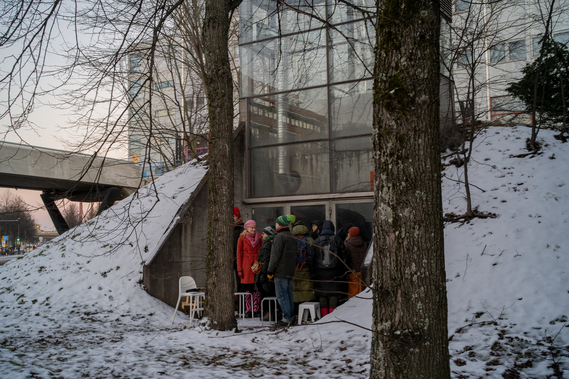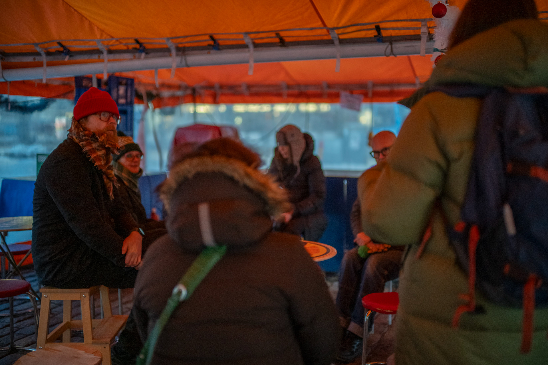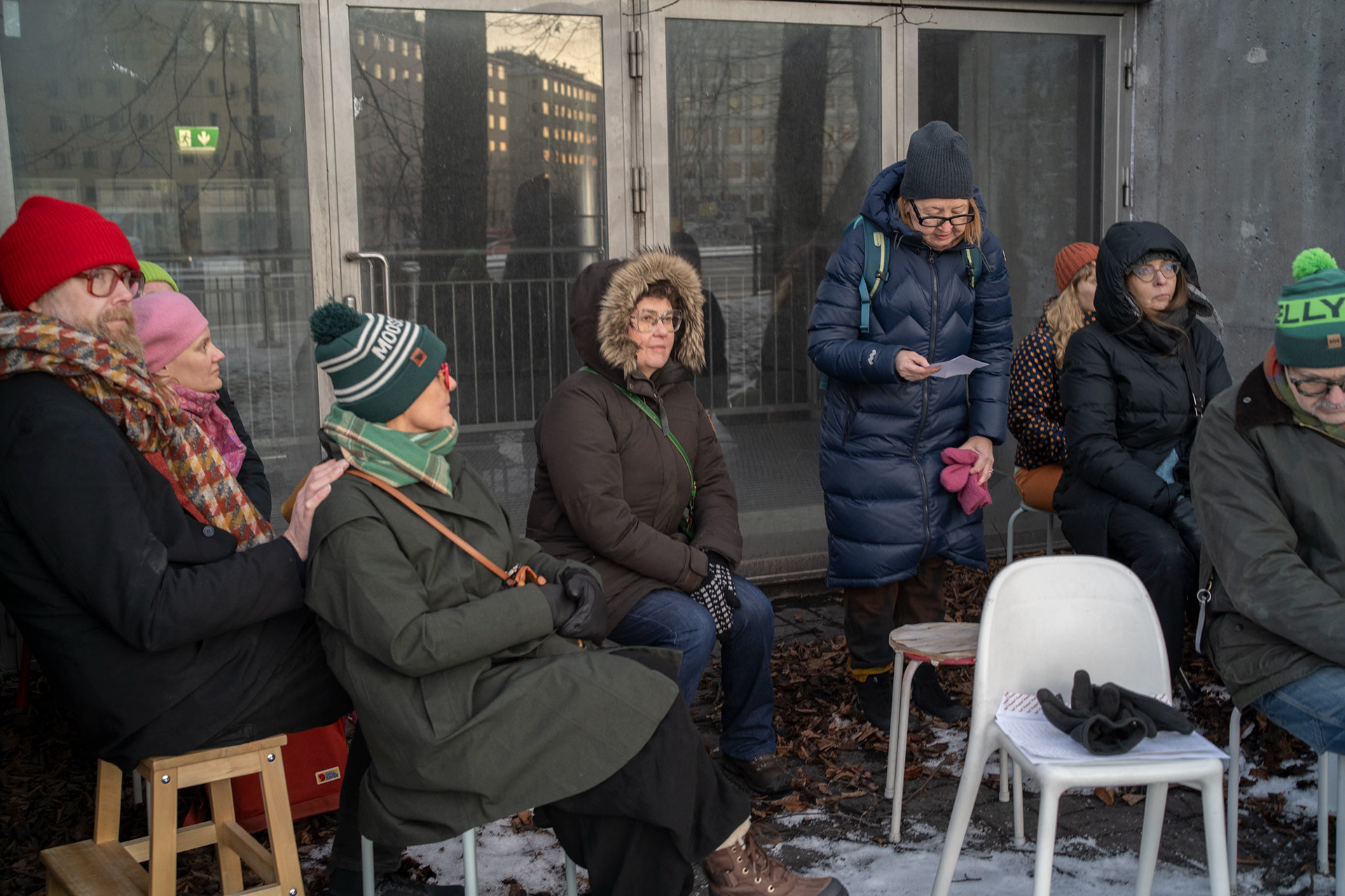 THE PARTICIPATORY ARTISTIC RESEARCH EVENT DISPLACED THE PUBLIC MEETING CONVENTIONS OF THE ARTISTIC RESEARCH BY TAKING STOOLS TO THE URBAN SPACE. THE PARTICIPANTS JOINED A SElF-GUIDED JOURNEY IN THE URBAN SPACE DURING WHICH THEY STUDIED THE POSSIBILITIES OF RECLAIMING THE URBAN SPACE. THE HIK ENDED AT THE MARKET SQUARE AT A TRADITIONAL COFFEE TENT.